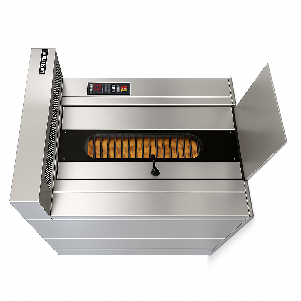 The major feature of the Porlanmaz Rotary Rack Oven is the equal heat distribution; operate at high production and regular circulation. It’s provided by well-designed heat exchangers. This ensures more uniform baking with lower energy consumption. Burning chamber is made of heat resistive (more than 1000 centigrade degree) special stainless steel. By means of the plate-tube system, high level steam is produced and each of the pans is adequately provided with the steam. Our rotary ovens are produced with side burner which is suitable long, narrow rooms and in extra compact dimensions. Therefore, our rotary ovens are ideal for installation in any bread or pastry shop. By means of halogen lamps which are mounted the on the door, an excellent illumination is obtained and it is easy to replace the lamps. The steam is prevented to be dispersed in the workshop thanks to the hood and aspirator over the oven. Baking chamber, all outside hoods ad chimney hood are fully made of stainless steel. It is easier to maintain and use of the oven as per its peers. It is recommended that a water softening unit is fitted to the water supply of all ovens.