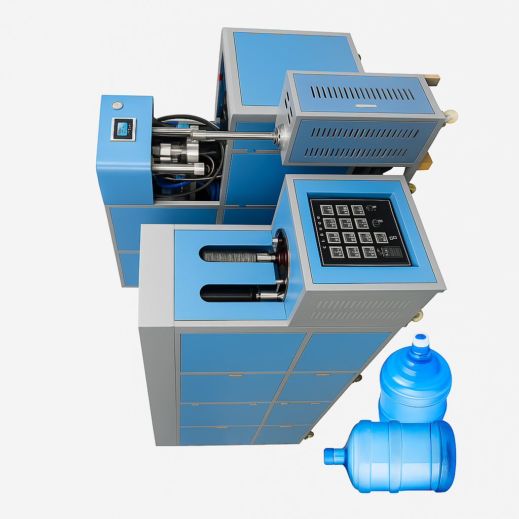 Engineered for manufacturing large plastic containers, blow molding machines shape heated plastic into durable, hollow forms using mold cavity technology.